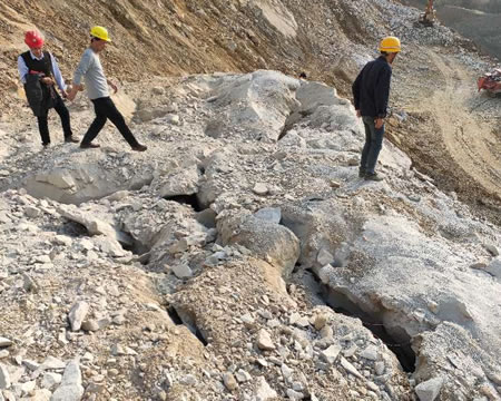 The choice of carbon dioxide cracking makes them more proficient. Moreover, as it is not restricted by time or other factors, the construction efficiency is greatly improved, and safety is more guaranteed. This product has no vibration waves or flying stones, and the operation procedure is simple. Now their hole spacing is 3.5*3.5*5.5 meters. After cracking and loosening, a 490-type gun is used for a second reduction. Every day, they used an average of 80 fracturing pipes, with an output of approximately 5,500 cubic meters. At the peak, they cracked 130 pipes at one time.